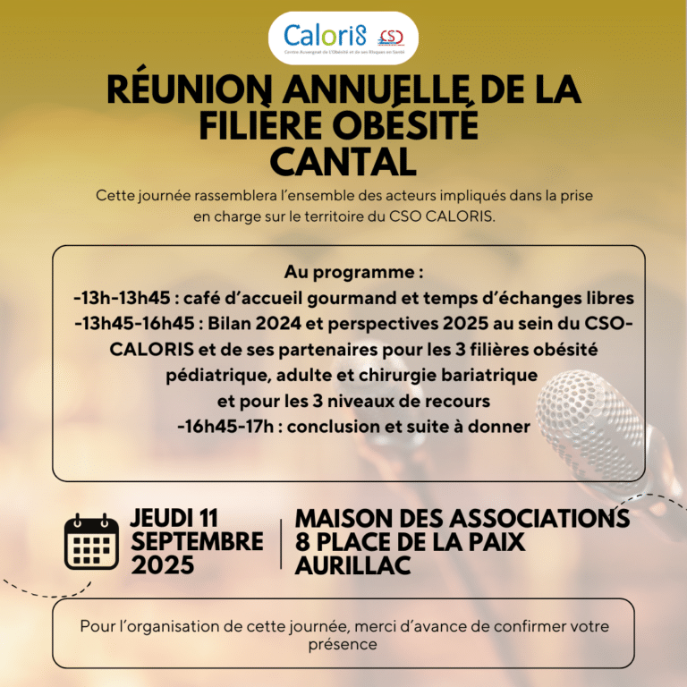 Le CSO-CALORIS organise réunion annuelle de la filière obésité dans le Cantal, le jeudi 11 septembre 2025 à 13h a Aurillac. Cette journée rassemblera…